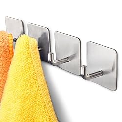 Self-adhesive kinds like command hooks can be mounted quickly and without drilling. Adhesive and suction cup styles can also provide a place to hang wet towels in the shower. Make sure to check the weight rating before buying. You’ll want to choose one with a rating for 3 lbs or more.